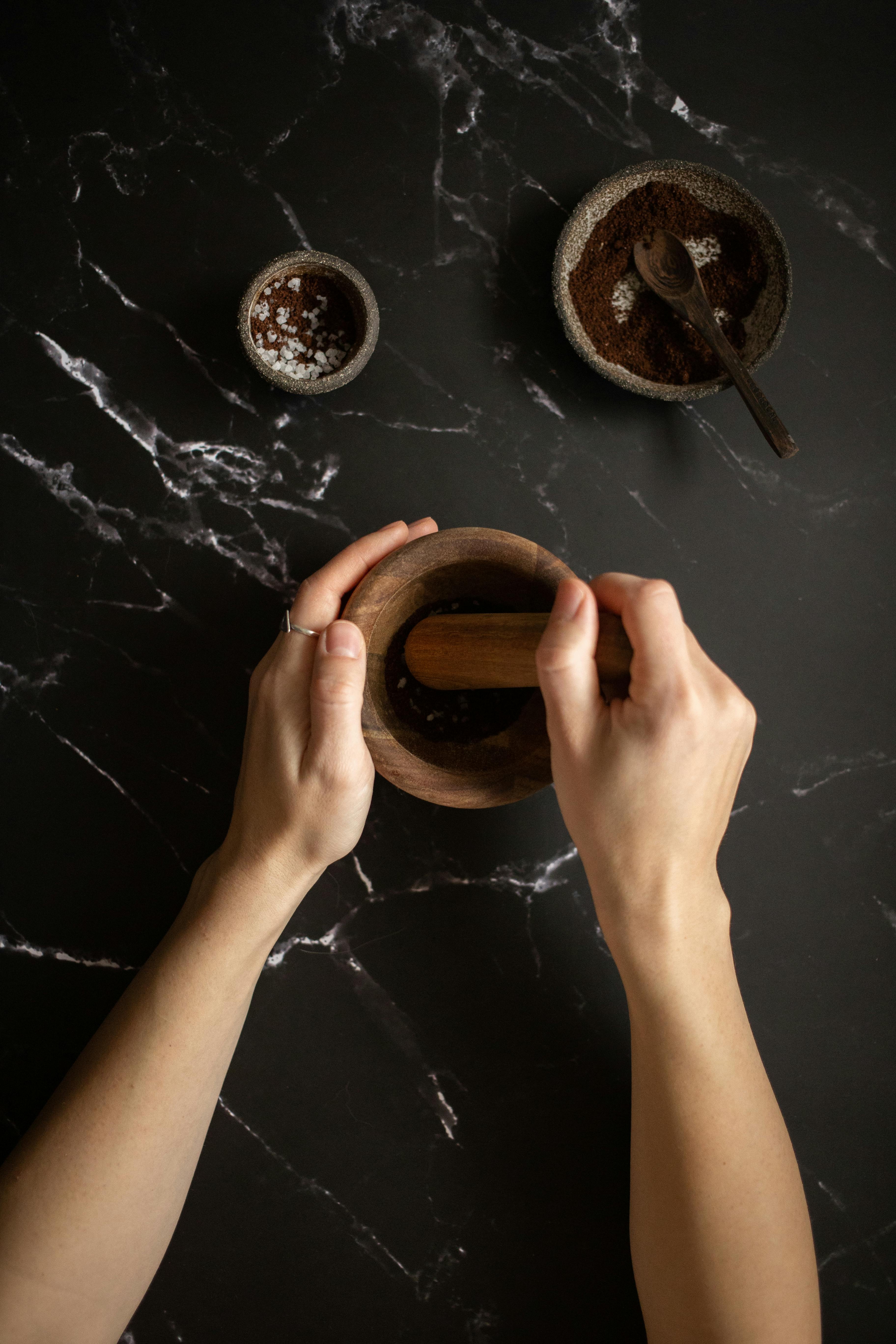 - Make a paste of coffee grounds by adding water or coconut oil.